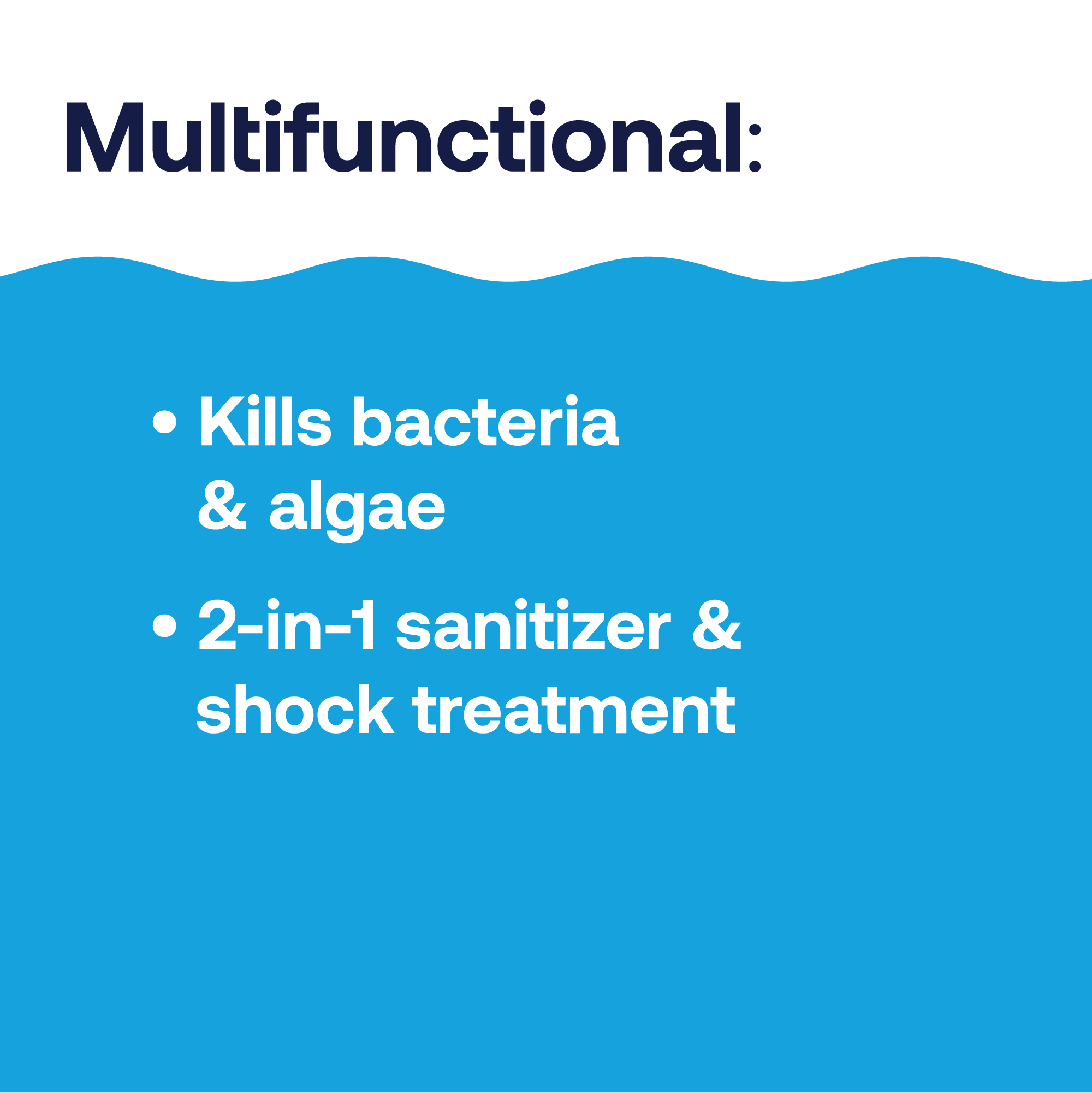 - This 2-in-1 liquid chlorine for pool formula works as both a sanitizer and shock, protecting your pool from bacteria, algae, and organic contaminants without overstabilizing or causing chlorine lock.