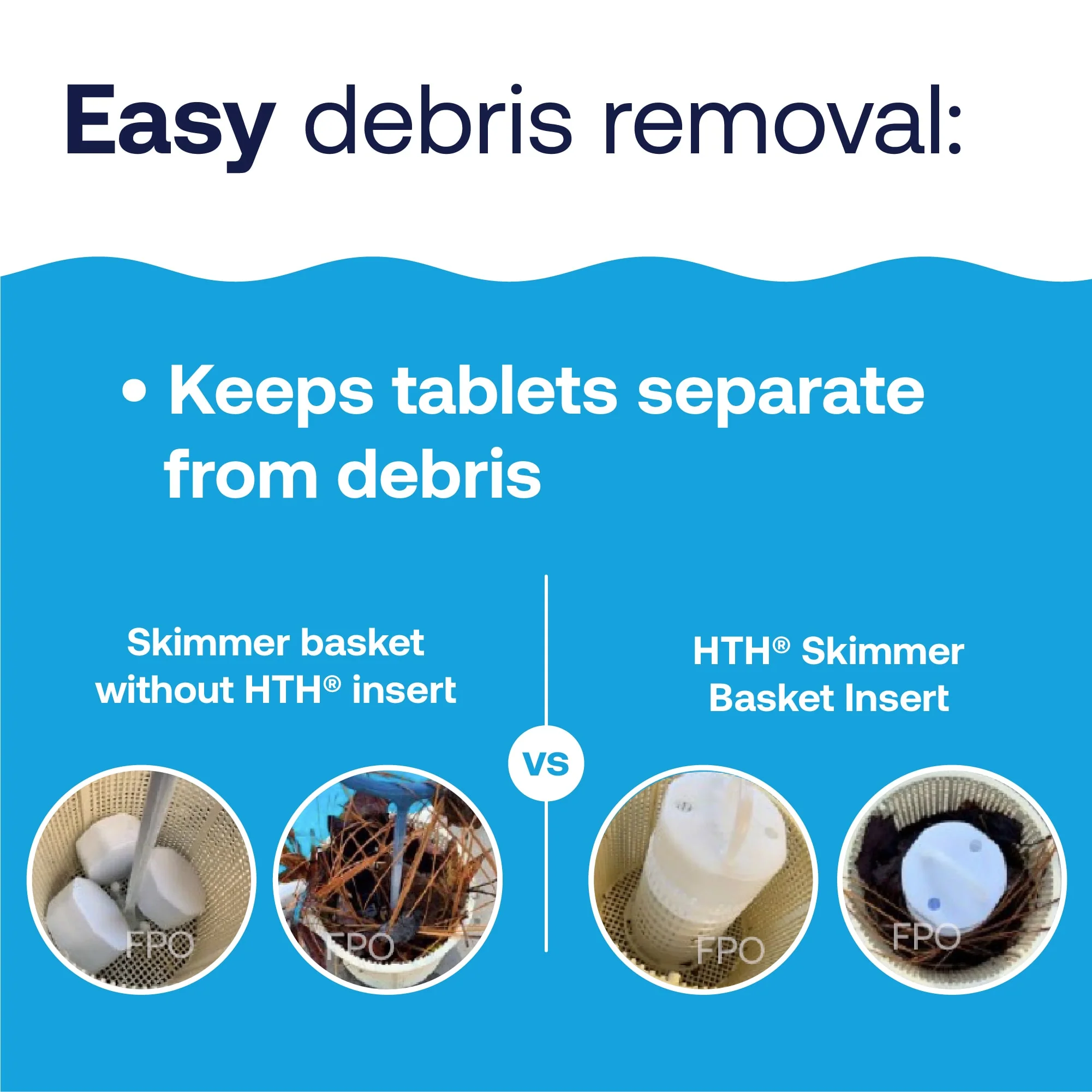 Safely remove debris, clean your skimmer basket and replace your 3” chlorine tabs without touching chlorine tablets using our pool skimmer basket insert!