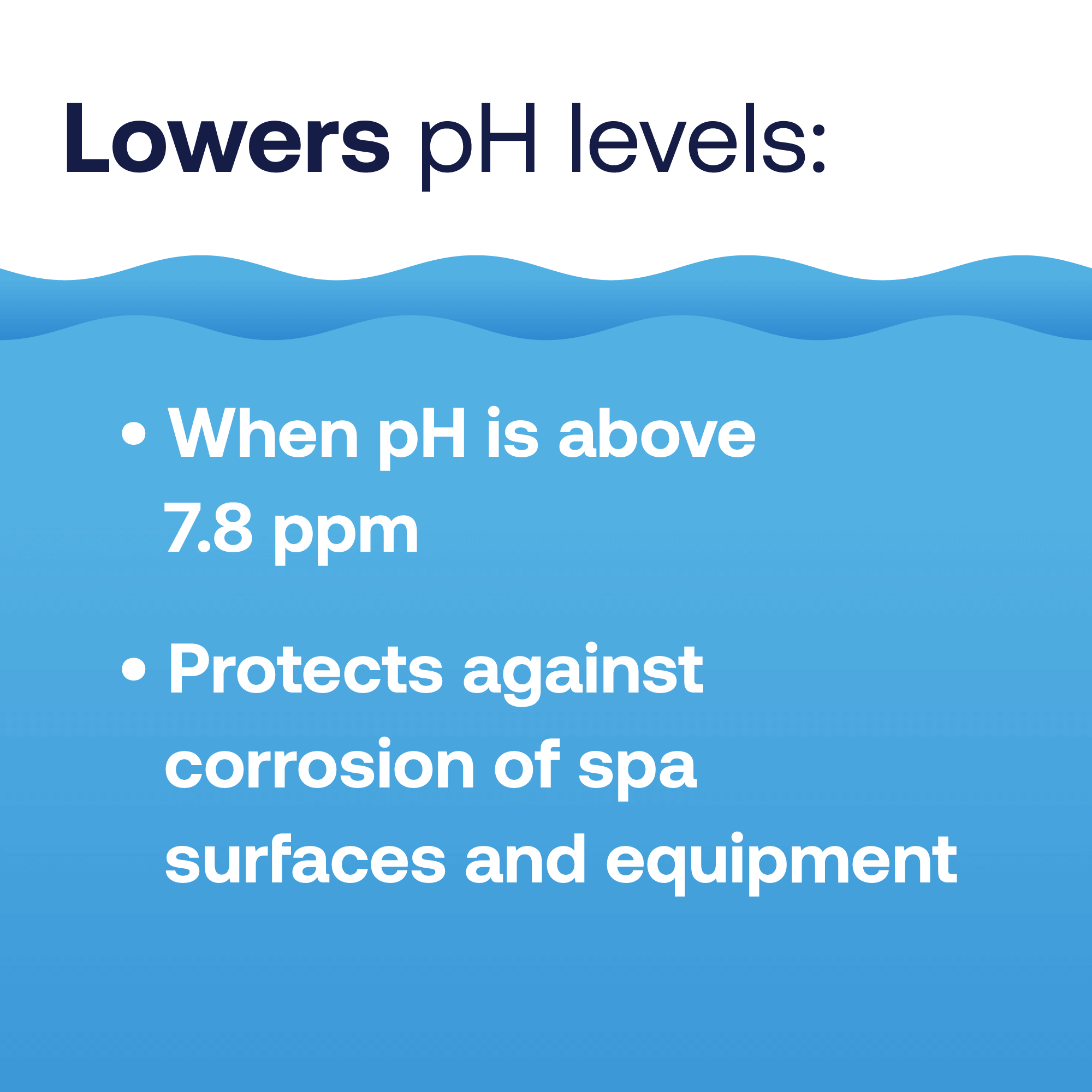 - This powerful spa pH down formula lowers high pH levels to restore balance, clarity, and comfort to your hot tub.